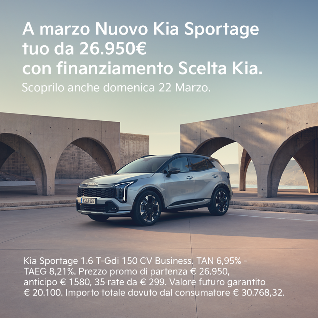 Nuova Kia Sportage – Vantaggio Totale Cliente fino a € 6.550 – rata da € 299/mese (Scelta Kia TAN 6,95%)